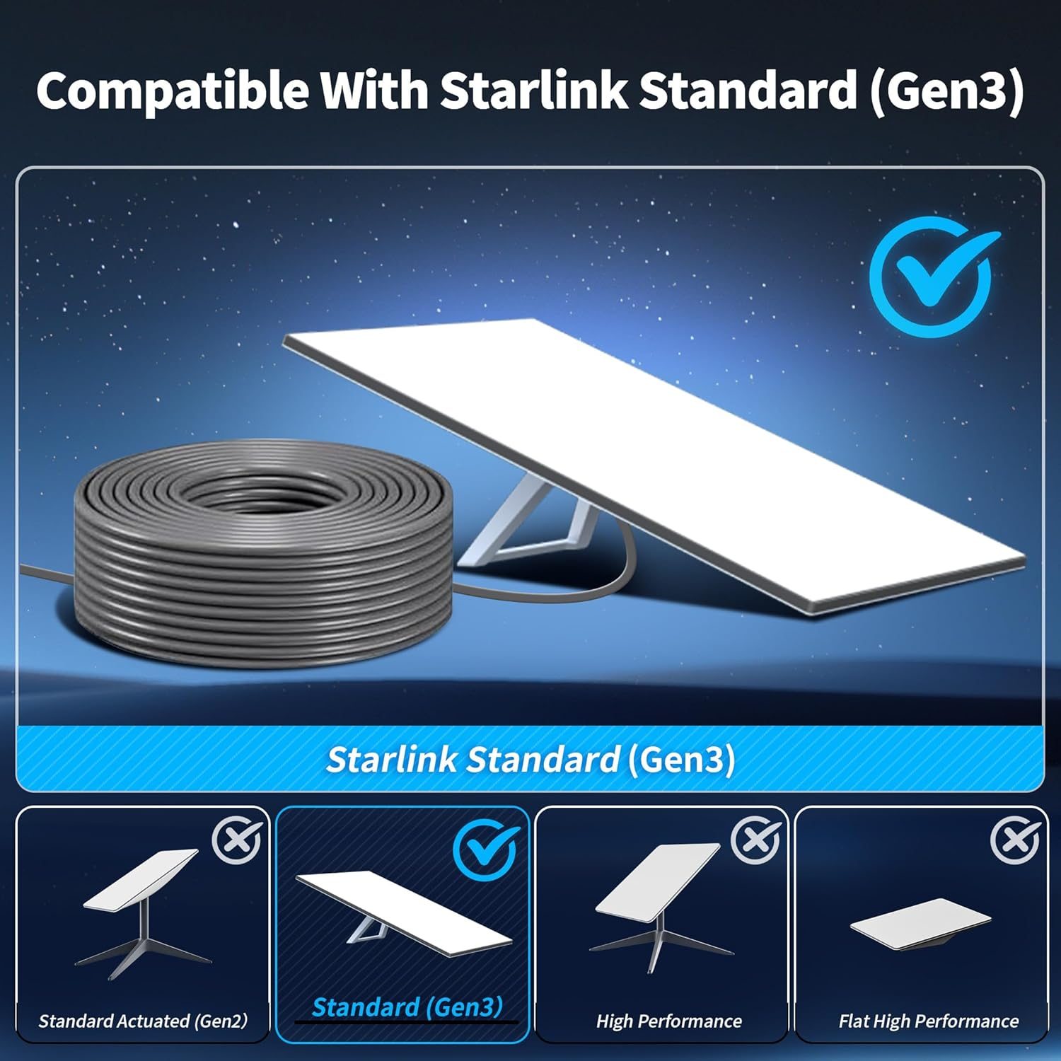 Starlink Gen 3 Ethernet Cable 6.5FT/ 2M Cable, Waterproof, Grey
