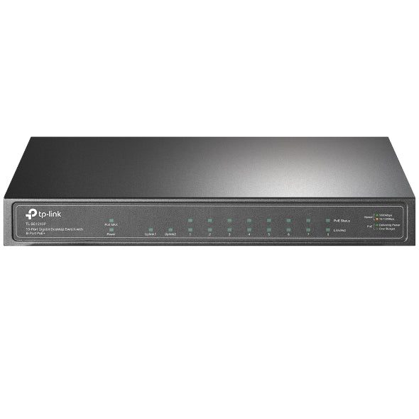 TP-Link TL-SG1210MP 10-Port Gigabit Desktop Switch with 8-Port PoE+PORT: 8× Gigabit PoE+ Ports, 2x Gigabit Non-PoE Ports, 1× Combo Gigabit SFP SlotS