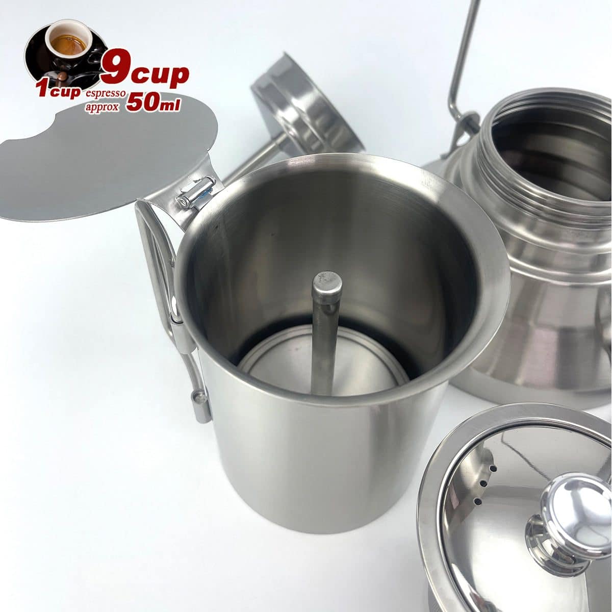2 In 1 Camping Stainless Steel 9Cup Pot Moka Coffee Maker Italian Espresso Kettle 2024 NEW MODLE