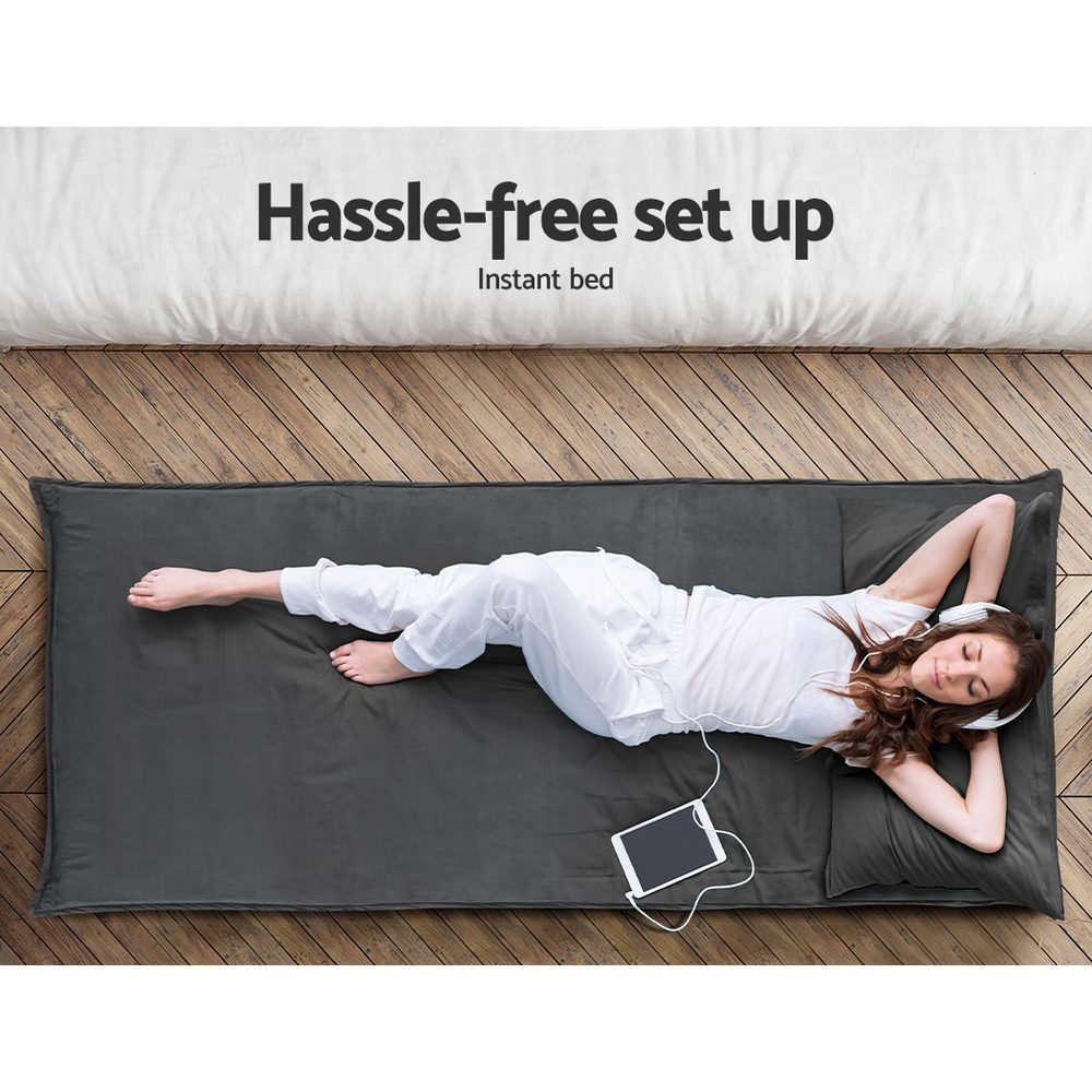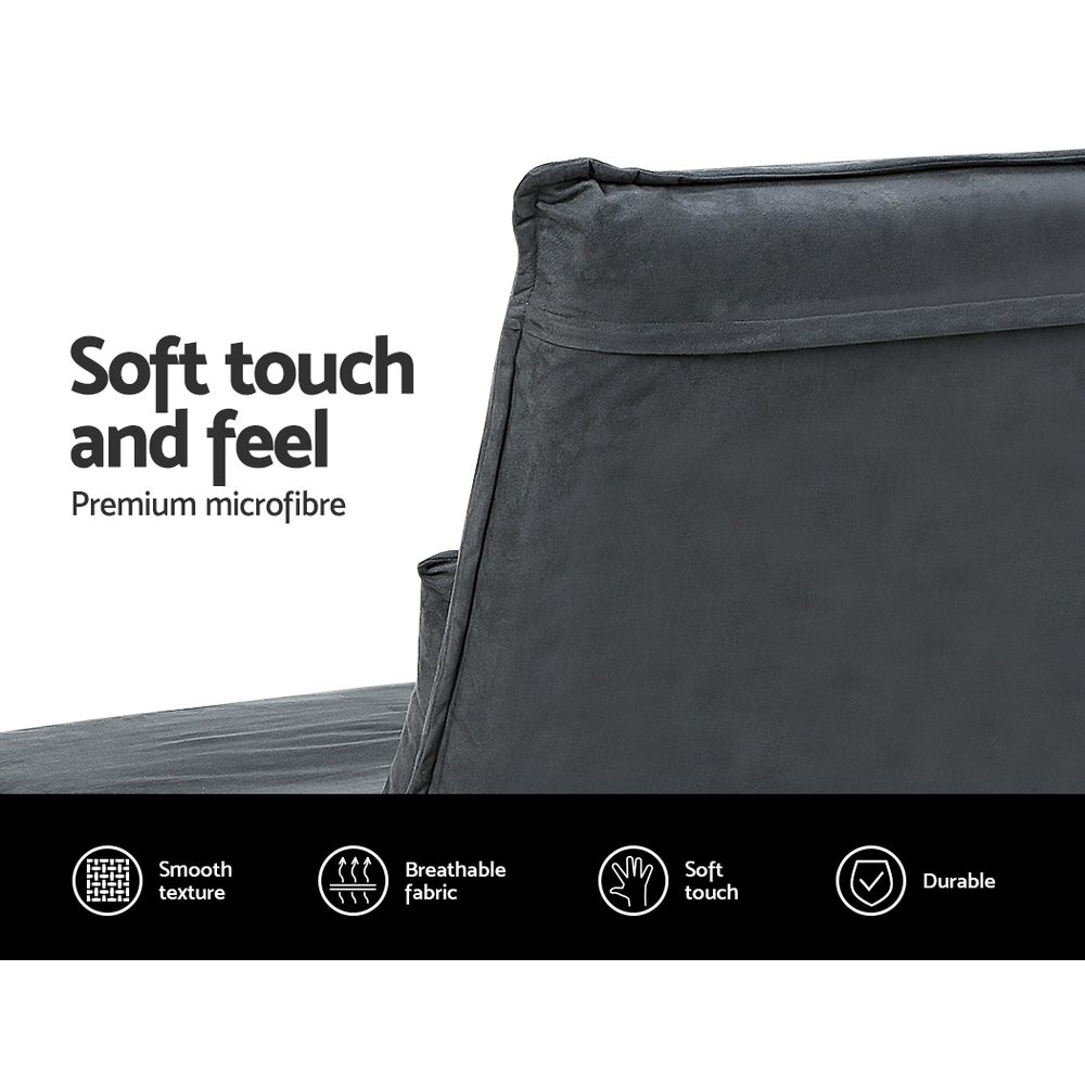 Forget about beanbags! The Artiss floor lounge sofa makes a perfect piece of furniture for chilling with friends. It allows you to create a beautiful and cosy sitting space anywhere effortlessly. So if you’re tired of blow-up mattresses or uncomfortable beanbags, then you’ll love our floor lounge. Our floor lounge is all about comfort, versatility, and beauty. It comes in gorgeous charcoal that will complement any space. Plus, its soft cushioned seat makes it quite comfortable to relax. Our floor lounge sofa features heavy-duty steel frame with premium microfibre fabric for durability and comfort. It boasts a convenient foldable design that enables you to fold it when not required. This makes it perfect for small spaces. Our floor lounge sofa can be adjusted into different positions for added comfort and convenience. You can use our floor lounge in different ways: lie on it, sit on it, or relax with your legs stretched. Great for movie marathons, sleepovers, gaming nights, or simply for snuggling. Purchase this versatile floor lounge today.