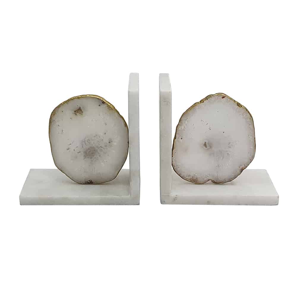 White agate on marble — a refined pairing of natural materials that brings organic texture and timeless elegance to your bookshelf. Every pair is naturally unique in crystalline pattern.