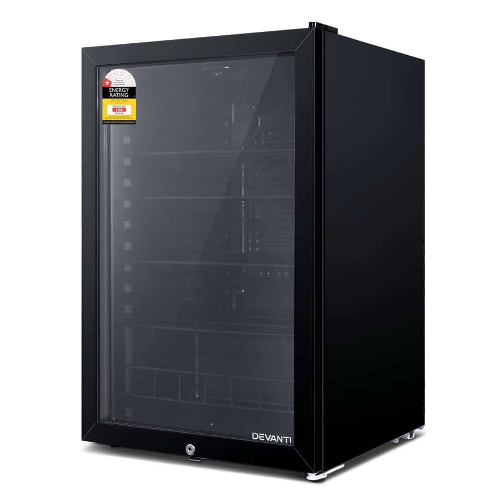 Our portable Devanti Bar Fridge is great for keeping a variety of food and beverages chilled and cooled without taking up too much space. Designed with seven temperature settings, the energy-efficient bar fridge lets you set your desired coolness and freshness. Other great features include adjustable shelves, double-glazed door, height-adjustable feet, built-in handle and consistent refrigeration to name a few. The compact bar fridge is also totally eco-friendly with its R600a freon-free refrigerant and well-made for robust use, such as the extra thick insulation and a built-in LED lamp to ensure operation is smooth, quiet and hassle-free. The fridge also comes with a built-in lock to keep the contents safe and secure, especially useful in a retail environment after you close for the night. Suitable for both domestic and commercial use, the Devanti bar fridge is a cool investment time and again.