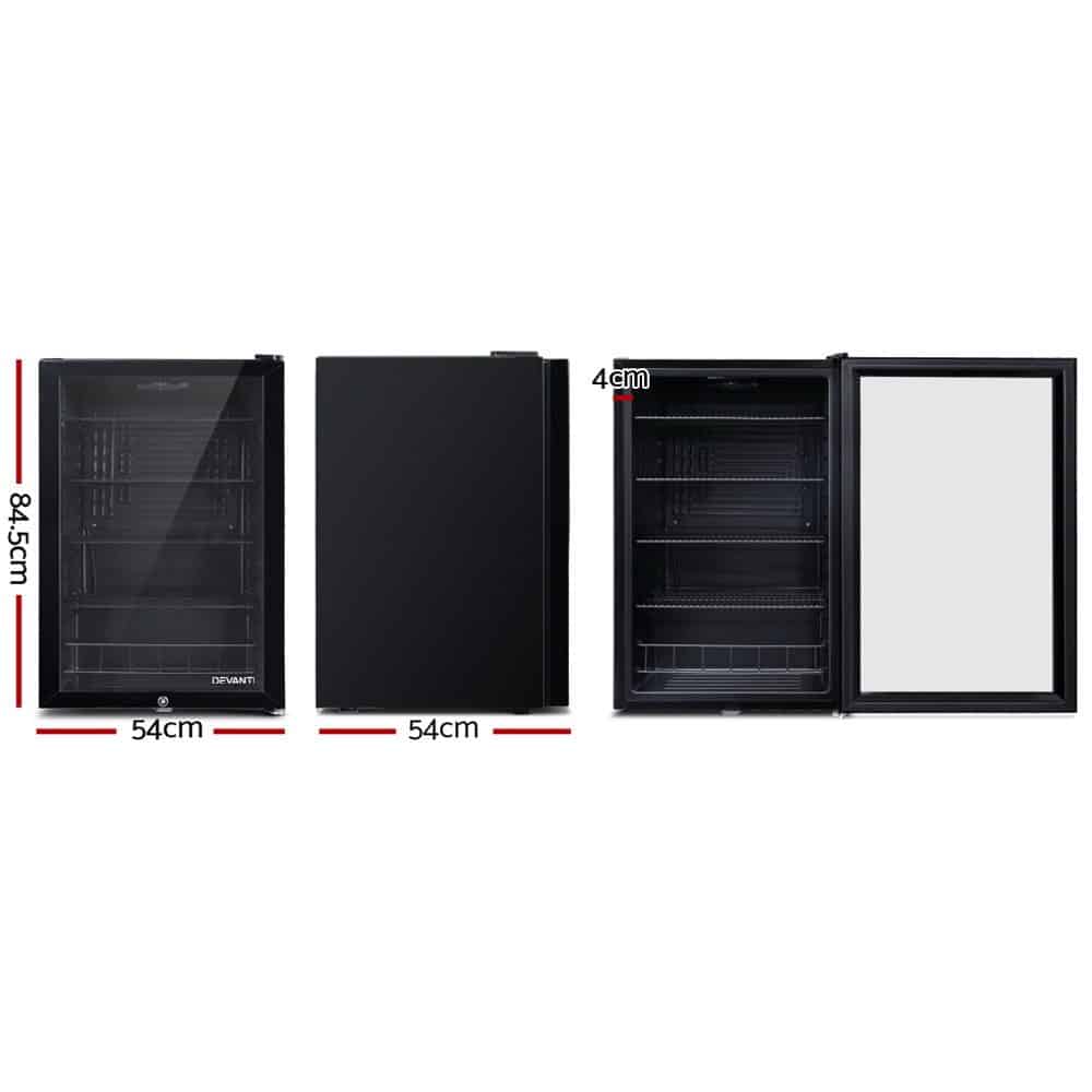 Devanti 115L Bar Fridge Glass Door w/Light Black