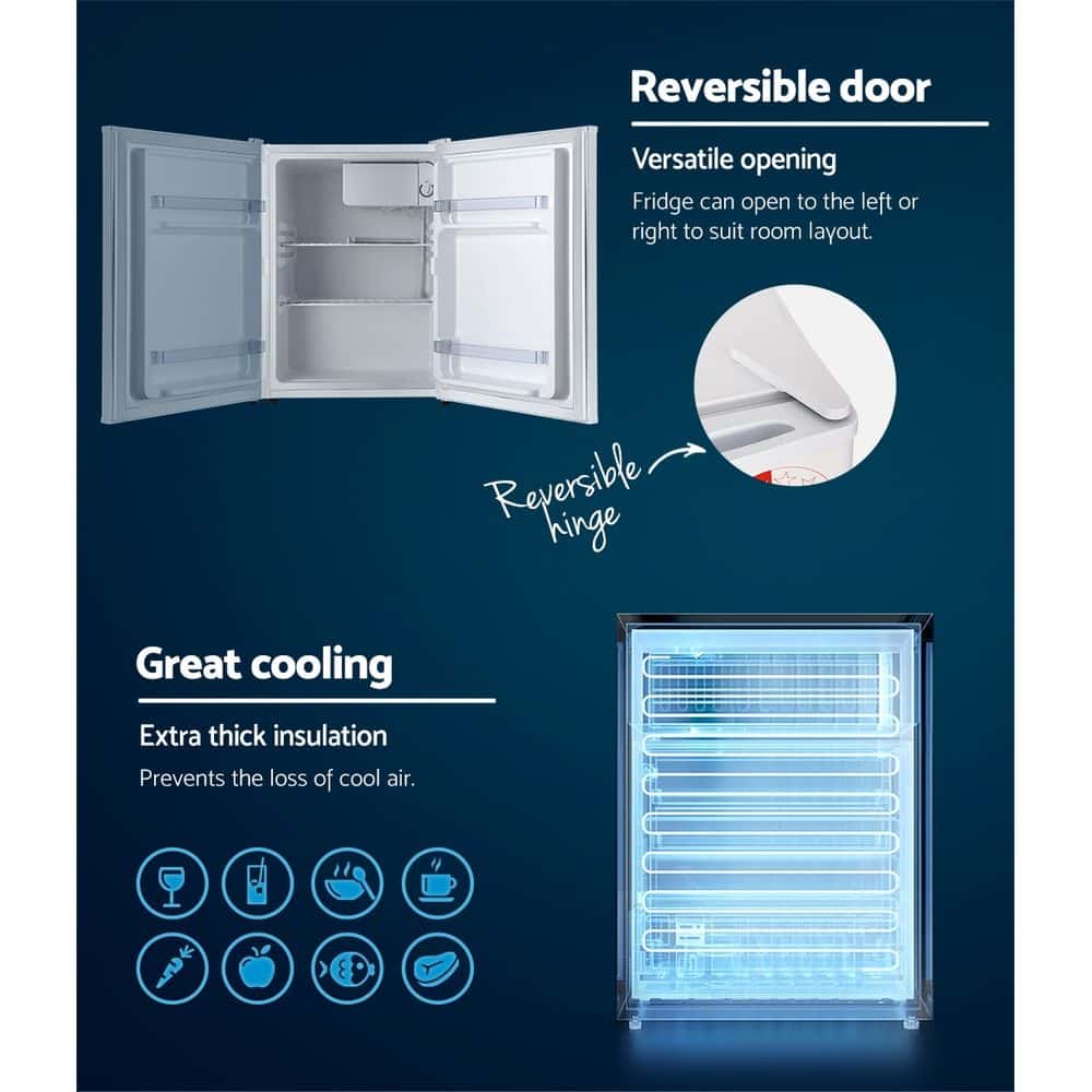 Suitable for your caravan, apartment, work kitchen or holiday house, this handy mini bar fridge is great for accommodating a variety of food and beverages with chill compartment and door compartment for storing drinks and sauces. Conveniently used as a second fridge or mobile refrigerator as well.
