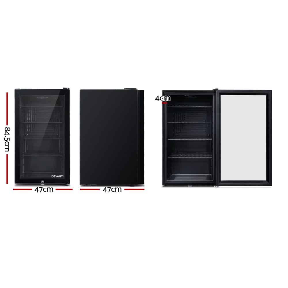 Our portable Devanti Bar Fridge is great for keeping a variety of food and beverages chilled and cooled without taking up too much space. Designed with seven temperature settings, the energy-efficient bar fridge lets you set your desired coolness and freshness. Other great features include adjustable shelves, double-glazed door, height-adjustable feet, built-in handle and consistent refrigeration to name a few. The compact bar fridge is also totally eco-friendly with its R600a freon-free refrigerant and well-made for robust use, such as the extra thick insulation and a built-in LED lamp to ensure operation is smooth, quiet and hassle-free. The fridge also comes with a built-in lock to keep the contents safe and secure, especially useful in a retail environment after you close for the night. Suitable for both domestic and commercial use, the Devanti bar fridge is a cool investment time and again.