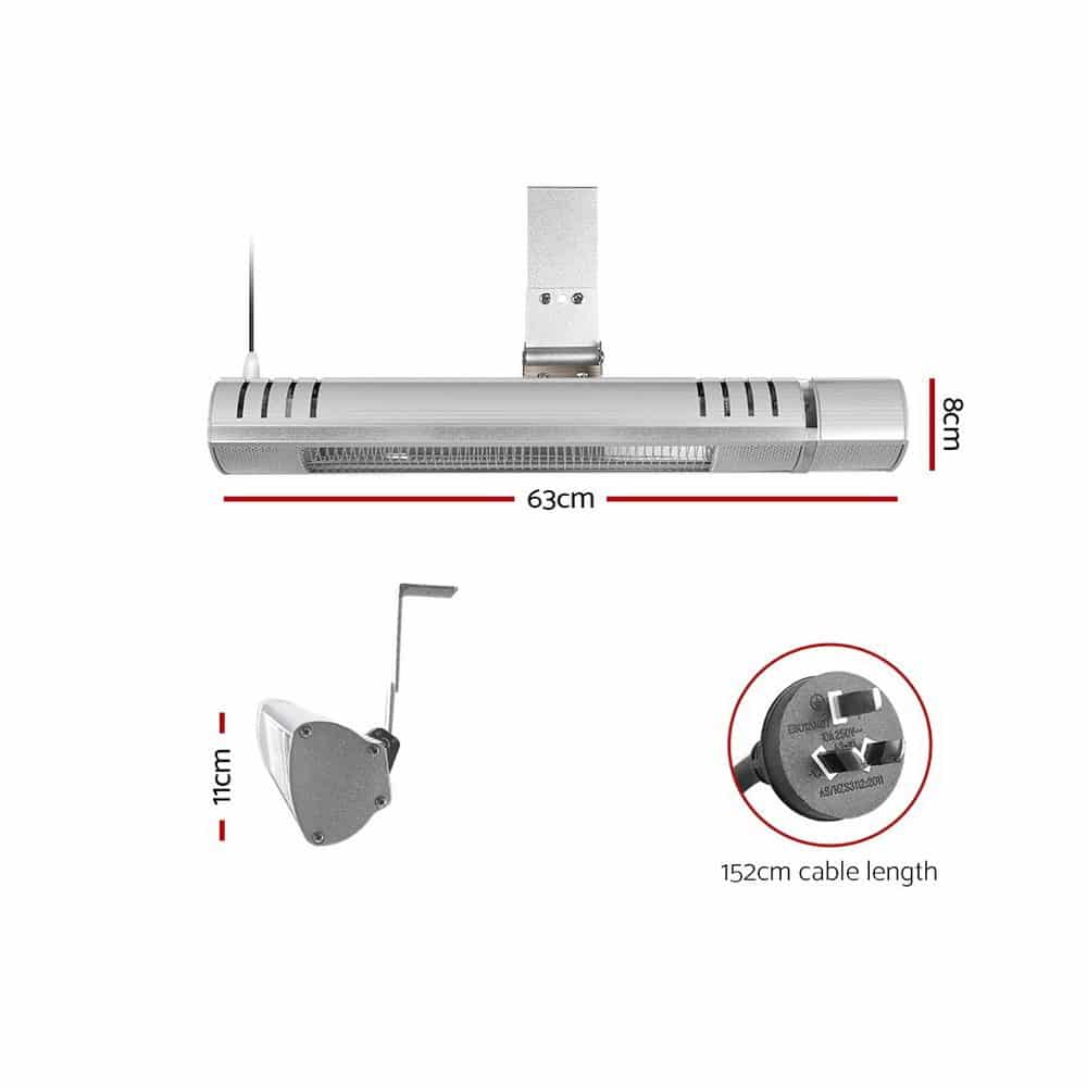 Just as the sun heats the Earth, a Devanti Halogen Heater will heat your home this winter, providing soothing sun-like warmth with its aluminium reflective heating technology. As infrared heating heats objects and not the air around them, this eco-friendly heater is more energy-efficient and cost-effective than other heaters. It features an unobtrusive design that will suit anywhere and adjustable swivel brackets to find the perfect heating position. Get warm from anywhere using the included remote control. The heater doesnt emit any odours, fumes or carbon dioxide, and up to 95% of the energy generated is converted into useful heat for your home. It has an IP65 rating that makes it perfect for outdoor and indoor use, and the halogen heater can be wall or ceiling mounted to suit your space requirements. With no moving parts, the heater also works silently and is virtually maintenance-free. Stay warm and cosy this winter with a Devanti Halogen Heater.
