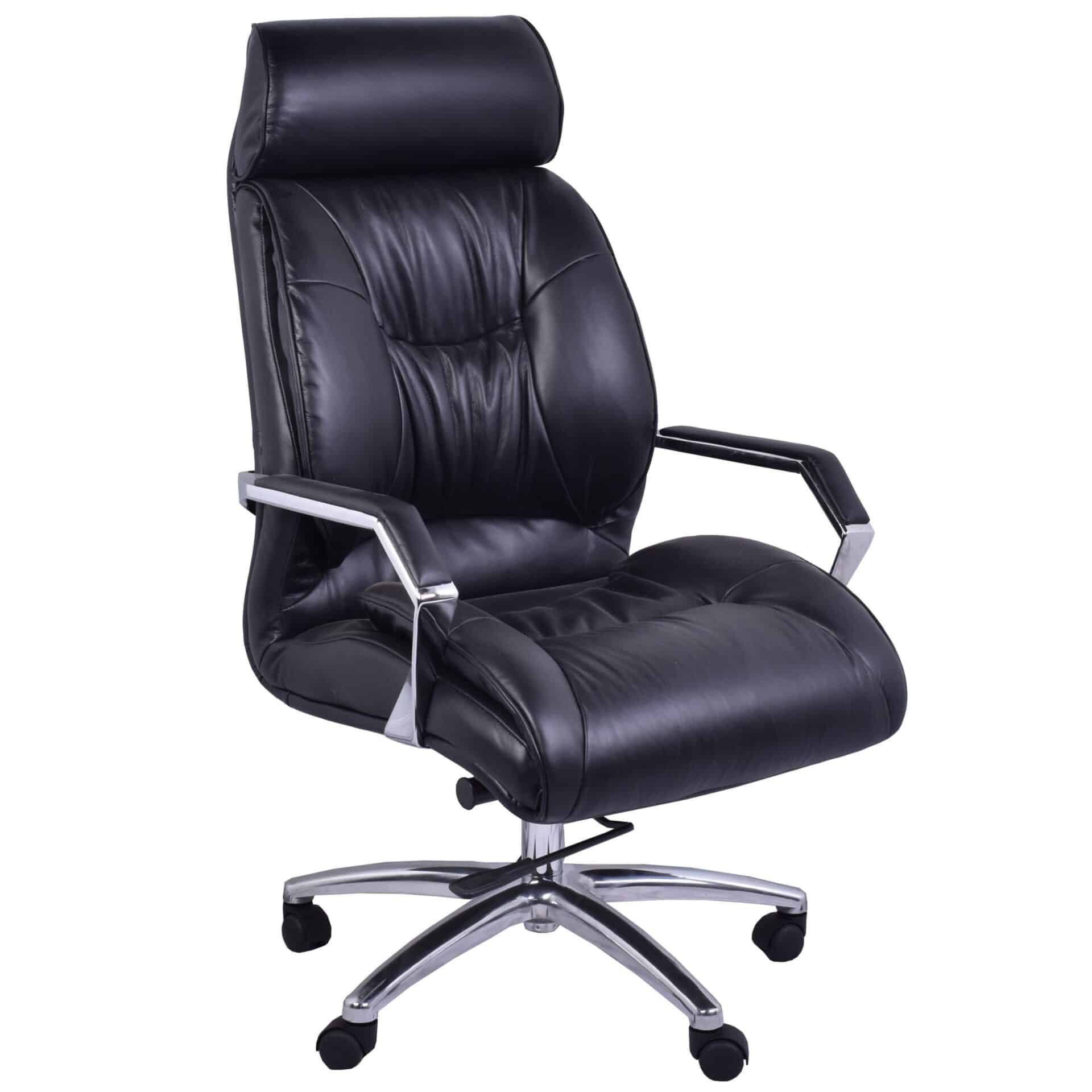 Black leather and chrome — the universal language of executive authority. The Kensington in black pairs premium cowhide with a polished chrome alloy base for a look that’s always in style.