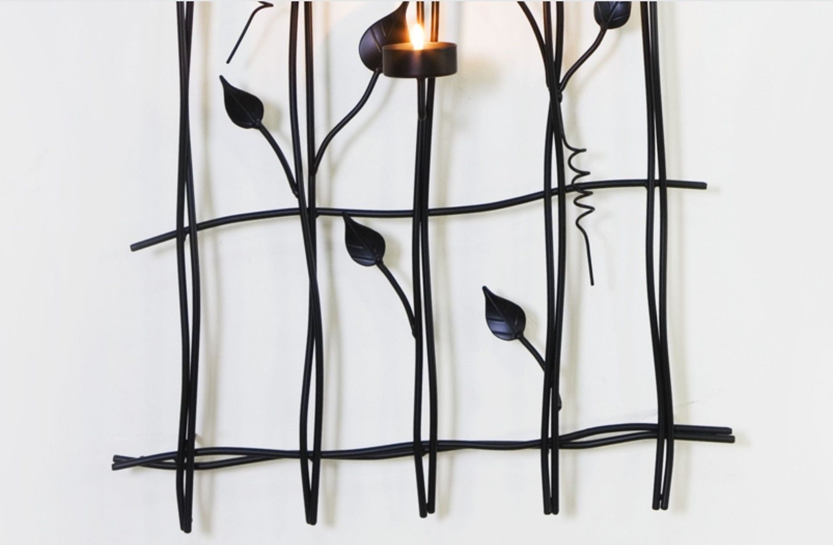 This elegant Leaf Style Black Tealight Candle Holders Wall Art Décor is the vogue way of adding appeal to any Room, redefining the appearance of your Home. Its unique and creative design will be a family favourite. This piece of art is crafted from 100% Wrought Iron. The product boasts a Leaf Design intricately placed within the frame, projecting great appeal. And further with the 6 Candle Holders, no Wall will ever be left in the dark!