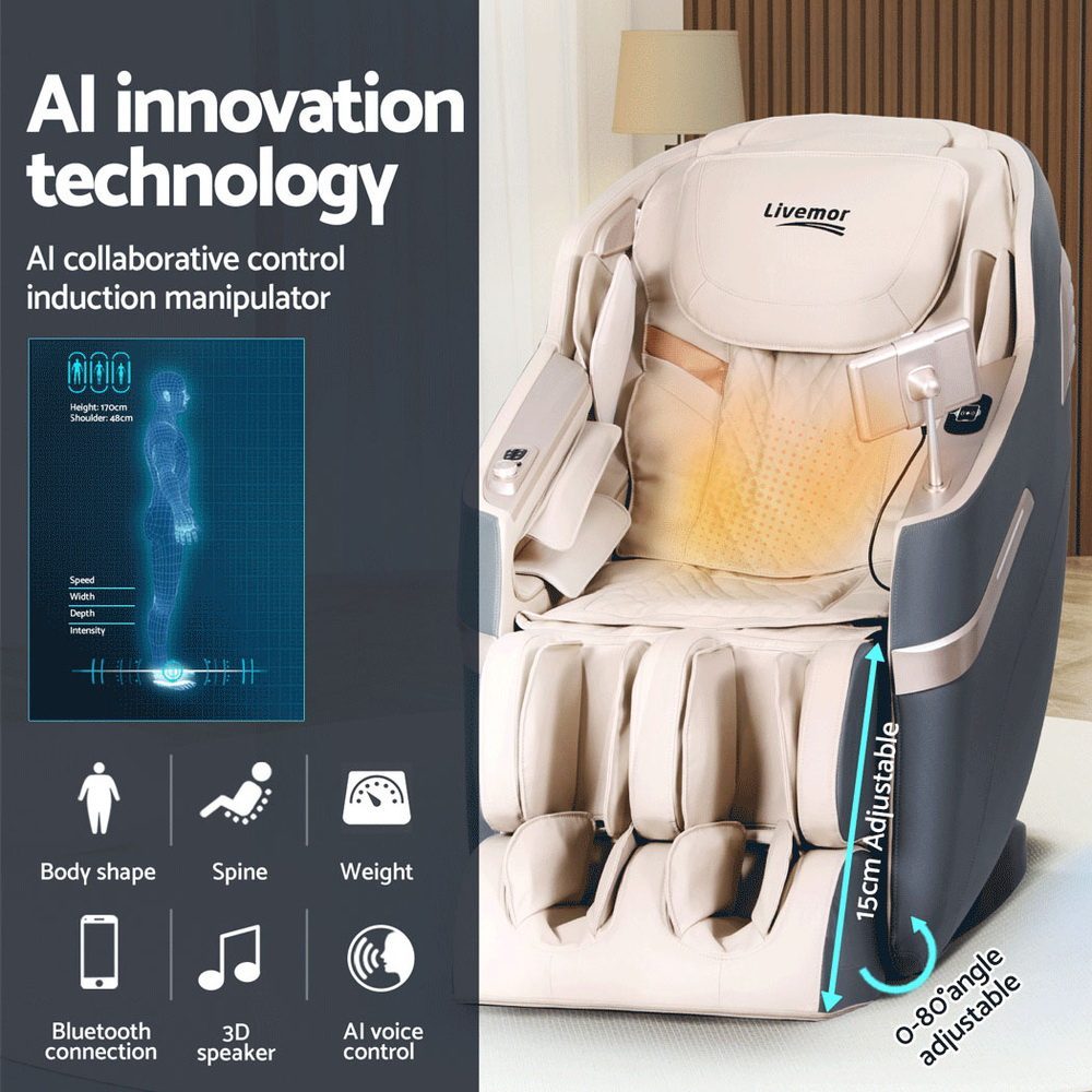 Beyond its massage capabilities, the Livermor chair includes several features to enhance your relaxation. Heated therapy for the waist and calf areas provides soothing warmth to help loosen tight muscles. The integrated 3D Bluetooth speakers allow you to enjoy your favorite music or podcasts while you unwind. Controlling the chair is simple and convenient, with a 7-inch LCD touch screen. To give you peace of mind, the chair comes with a 3-year warranty. Whether you’re looking to relieve stress, soothe sore muscles, or simply enjoy some quiet time, the Livermor Electrical Massage Chair offers a reliable and comfortable solution.