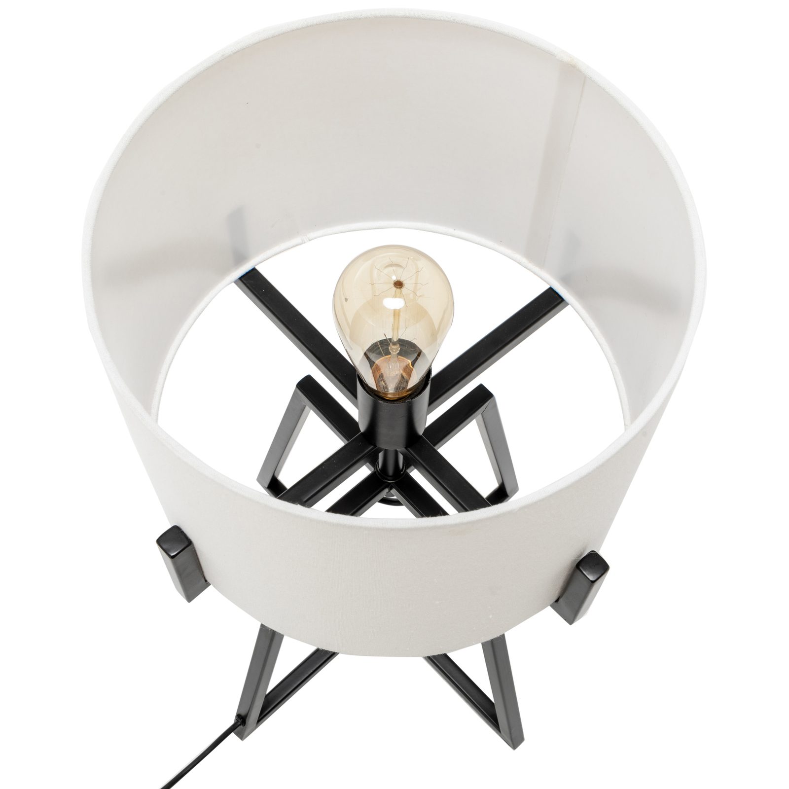 • Modern Design: Sleek black powder-coated steel base with a stylish white linen drum shade.