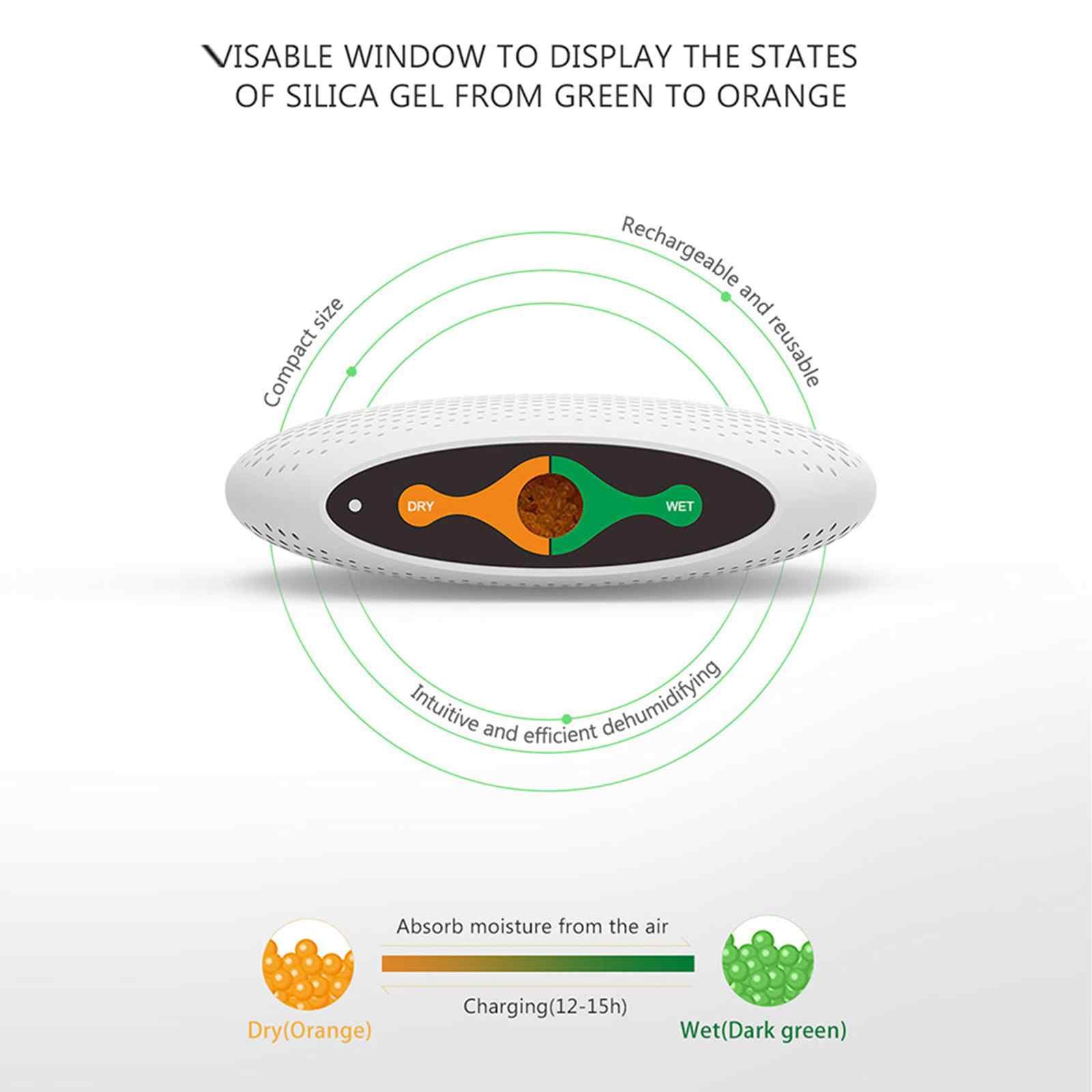 - Visible window to display states of silica gel from green to orange