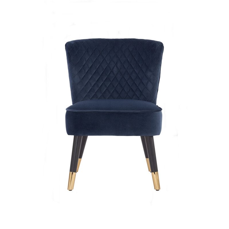 Nalanie Lounge Chair with Black and Gold colour leg, Navy colour Veloutine fabric