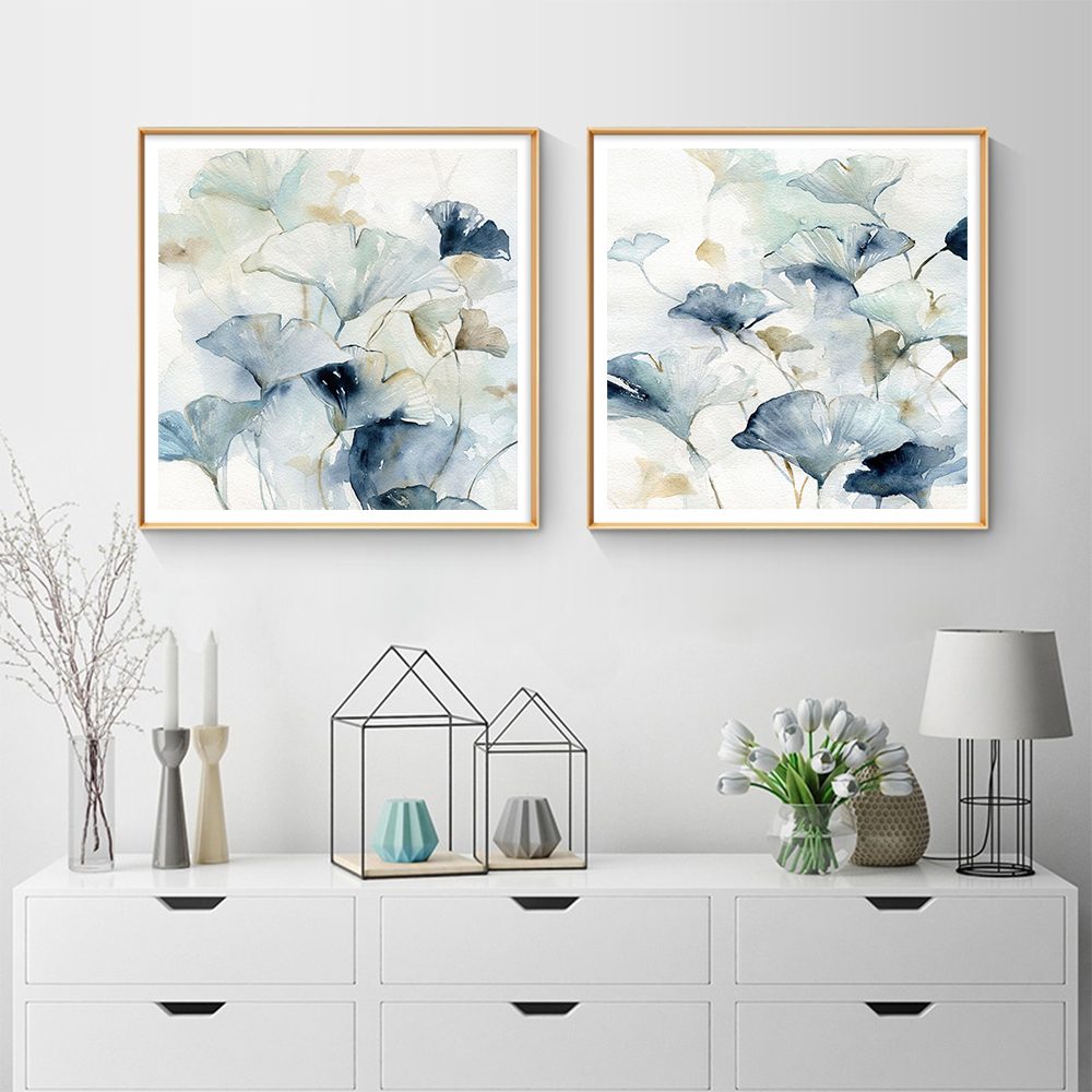 Wall Art 60cmx60cm Gingko Leaves By Carol Robinson 2 Sets Gold Frame Canvas
