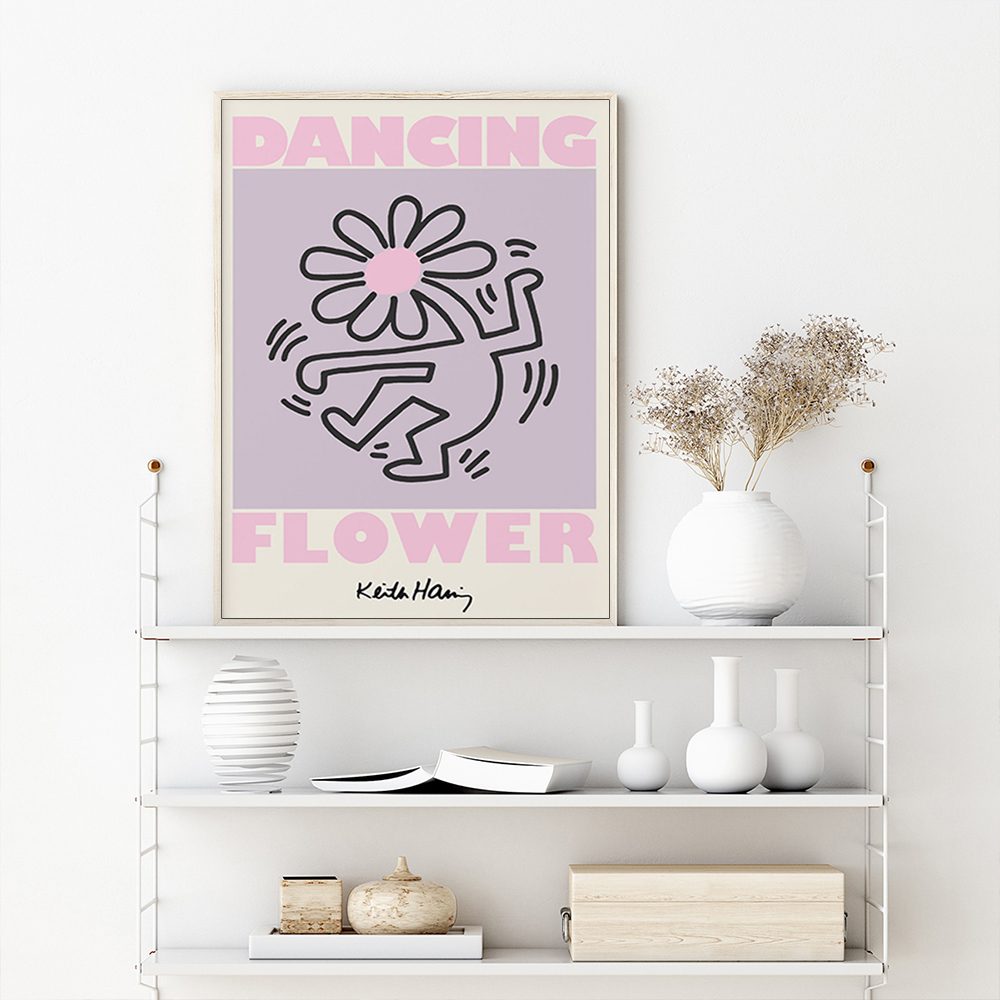 Wall Art 70cmx100cm Keith Haring Dancing Flower Wood Frame Canvas