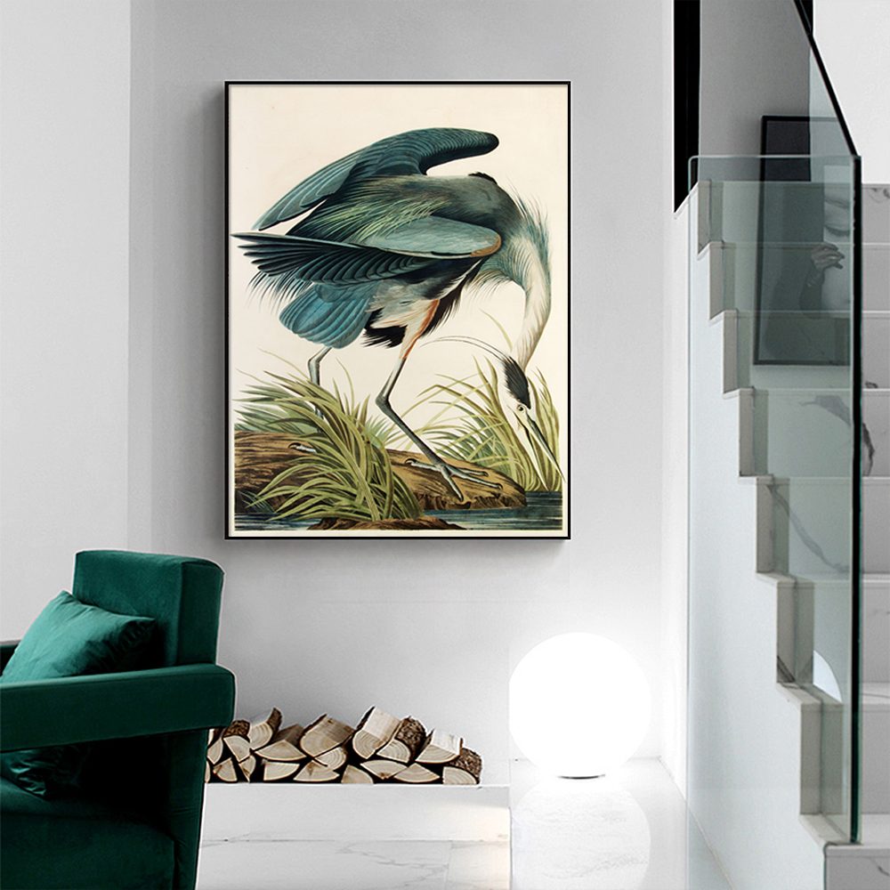 Wall Art 80cmx120cm Great Blue Heron By John James Audubon Black Frame Canvas